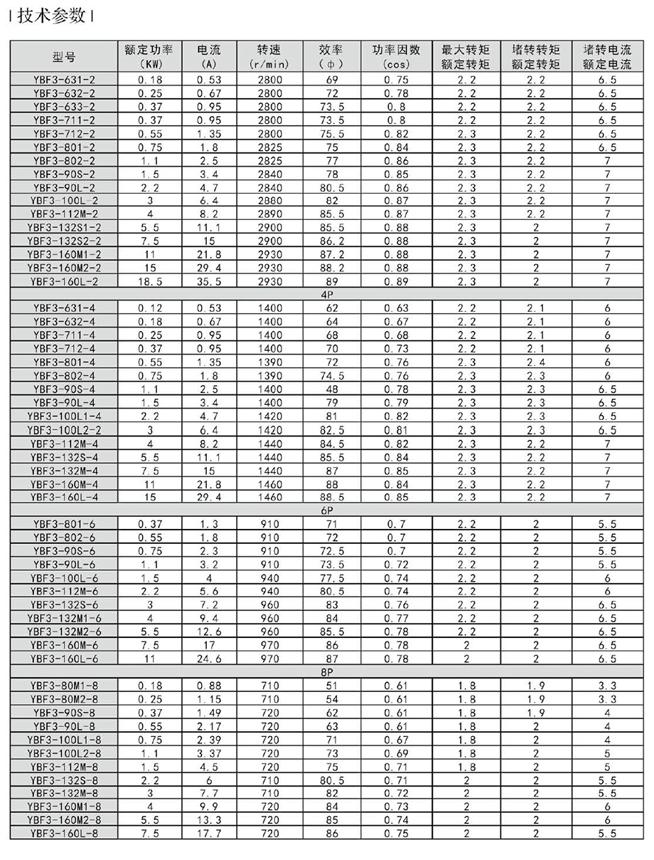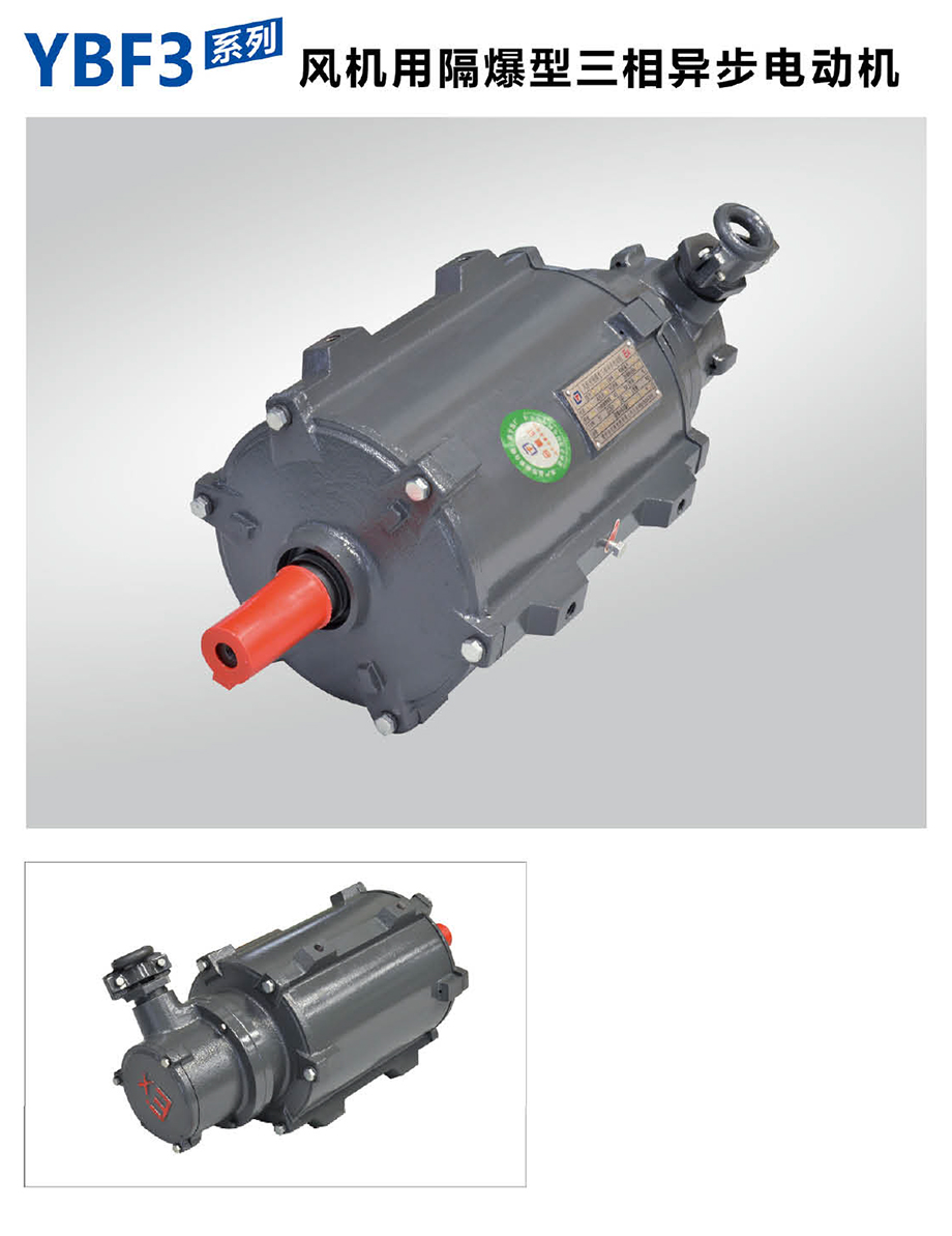 YBF3防爆電機(jī)是專為配套隔爆型通風(fēng)風(fēng)機(jī)而設(shè)計(jì)開發(fā)的新產(chǎn)品,具有體積小、重量輕、效率高、噪聲低、振動(dòng)小、運(yùn)行安全可靠、使用維護(hù)方便等特點(diǎn)。YBF3防爆電機(jī)的功率等級(jí)、安裝尺寸符合我國標(biāo)準(zhǔn)和國際電工委員會(huì)IEC標(biāo)準(zhǔn),具有當(dāng)代國內(nèi)領(lǐng)先的技術(shù)水平。YBF3系列風(fēng)機(jī)用隔爆型三相異步電動(dòng)機(jī)執(zhí)行標(biāo)準(zhǔn)GB3836.1-2010《爆炸性環(huán)境用電氣設(shè)備第2部分:隔爆型“D”MT451-1995煤礦用隔爆型低壓三相異步電動(dòng)機(jī)安全性能通用技術(shù)規(guī)范》。主要性能符合《隔爆型三相異步電動(dòng)機(jī)技術(shù)條件第5部分YBF3系列風(fēng)機(jī)用隔爆型三相異步電動(dòng)機(jī)(機(jī)座號(hào)63-355)》的規(guī)定,防爆標(biāo)志為EXDBIBT4、EXDIBT4(原標(biāo)志為EXD),主要作為風(fēng)機(jī)的原動(dòng)機(jī)使用。適用于煤礦井下非采掘面具有甲烷可燃性氣體或煤礦與空氣形成爆炸性氣體環(huán)境的場(chǎng)所。電動(dòng)機(jī)的額定電壓為380V、660V、380/660V、660/1140V,額定頻率50HZ。