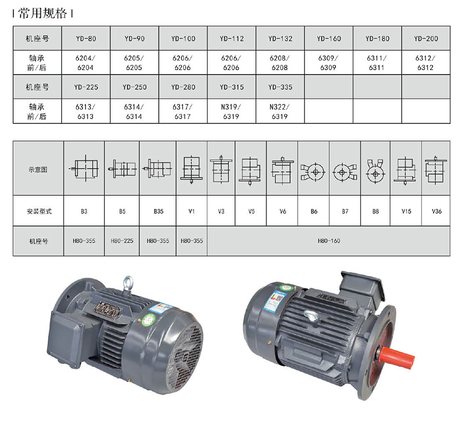 YD系列變極多速三相異步電動機(jī)是Y2系列三相異步電動機(jī)的電氣派生產(chǎn)品,本系列的外形及安裝尺寸、絕緣等級、冷卻方式均與YE2系列相同,安裝尺寸完全符合國際IEC標(biāo)準(zhǔn),功率等級、起動性能與力能指標(biāo)均與國際同類變極多速電動機(jī)的先進(jìn)水平相近。