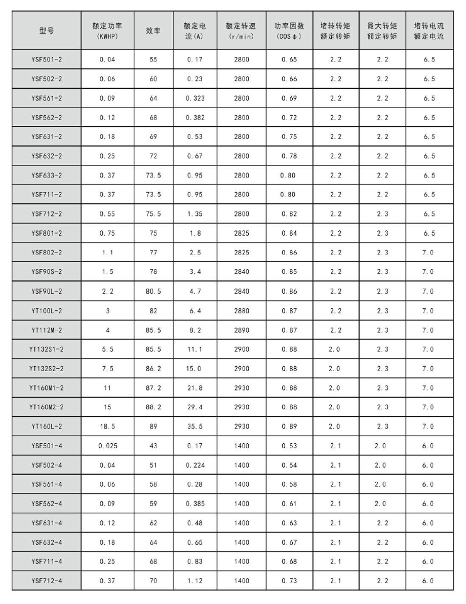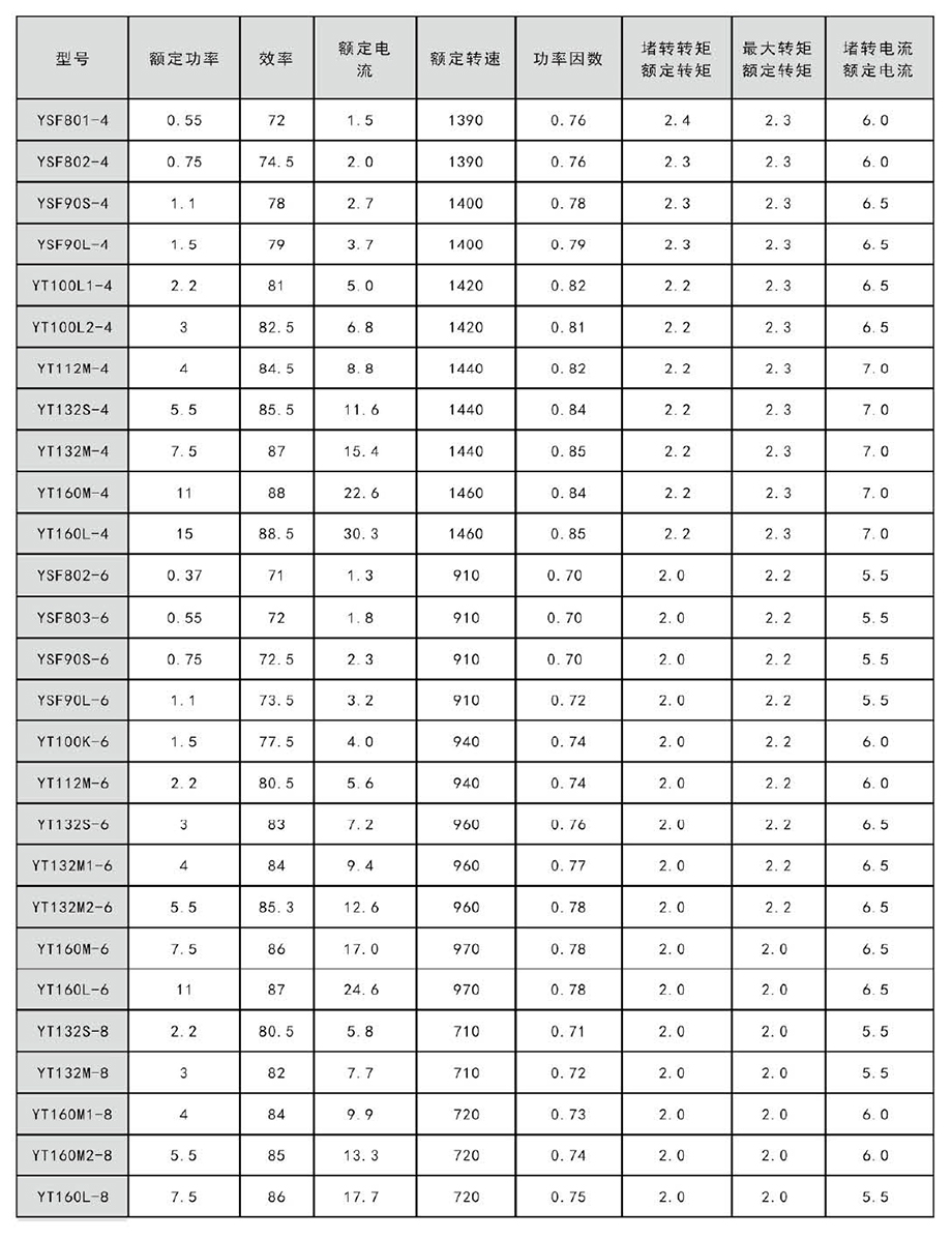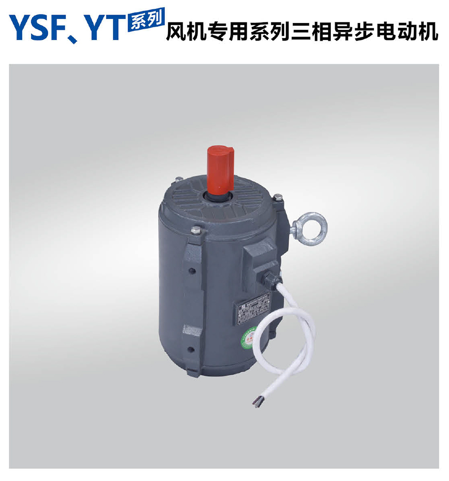 YSF、YT風機專用系列三相異步電動機是根據(jù)風機行業(yè)的配套要求,電動機在結(jié)構(gòu)上采取了一系列的降噪、減振措施。該系列電動機具有高效節(jié)能、噪聲低、振動小,起動性能好、運行可靠、使用安裝方便等特點。額定電壓380V,頻率為50HZ,也可按用戶要求制成其它電壓和頻率。防護等級為IP44,絕緣等級為B級,也可制成F級,工作方式為S1。